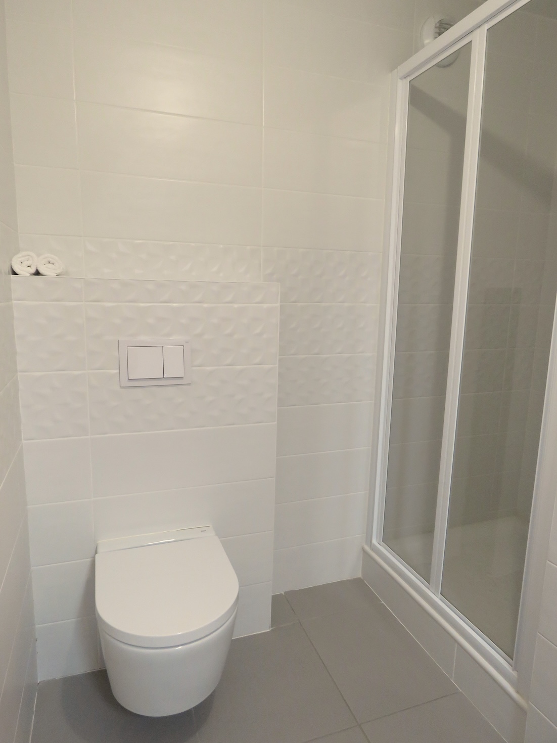 The apartment itself is a spacious 130m2 with four bedrooms, one bathroom and one ensuite, open plan living space and large balcony. The master bedroom boasts a king size bed with an ensuite shower, sink and toilet. This bed can be made into two singles if needed. The 2nd bedroom has a king size double bed which can also be split into two singles and the room includes an ensuite shower. Both the 3rd and 4th bedroom have singles that can be made into Kingsize doubles (super kingsize in the 4th bedroom).