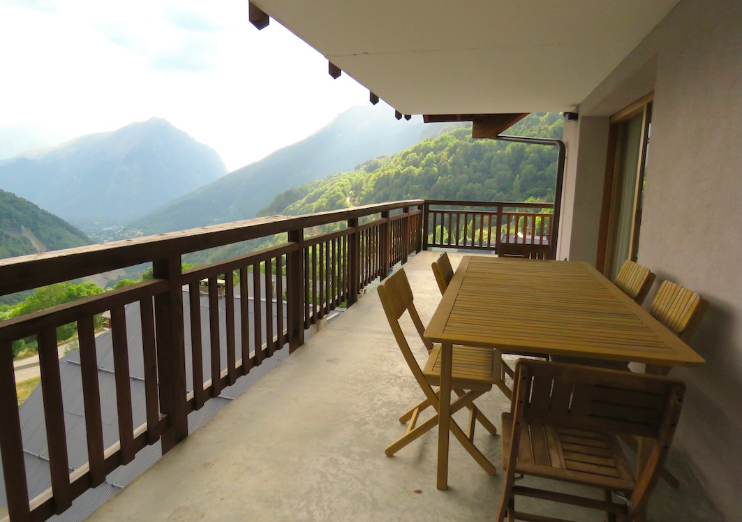 There is one en-suite bathroom with shower over, one ensuite shower room, one family bathroom with shower over and one separate WC. There are 4 x WCs in total. Moving into the open plan living space you are struck by the incredible views of the La Fare waterfall, the La Fare ski run and the valley towards Lac du Verney. The balcony is enormous with surface area of 39m2 and south facing so it receives the sun for most of the day.